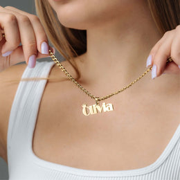 Jede Halskette bietet eine persönliche Note mit Ihrem gewählten Namen, kunstvoll in eleganter Schrift gestaltet. Tragen Sie ein Stück von sich selbst nah am Herzen und fügen Sie Ihrer Sammlung ein bedeutungsvolles und stilvolles Accessoire hinzu.